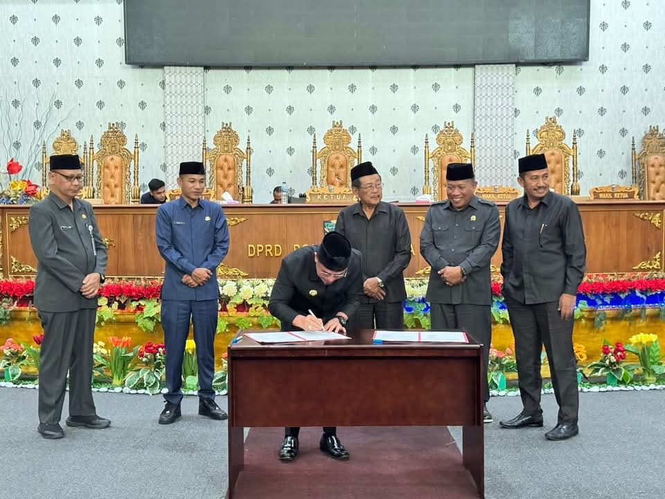 Penandatanganan tersebut berlangsung dalam Rapat Paripurna DPRD Boltara, Jumat (10/10/2025), di Ruang Sidang DPRD.
