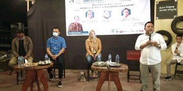 Kegiatan yang berlangsung di Warung Kopi Jarod di Kelurahan Matali ini mengangkat tema “Recovery Ekonomi dimasa dan Pasca Covid-19”, dengan narasumber Kepala Bepelitbangda Kota Kotamobagu Sofyan Mokoginta SH ME, Dekan Fakultas Ekonomi UDK Indah Samuel SE ME MAPPI, dan Pemred BMR Fox Gusman Laeta SE.