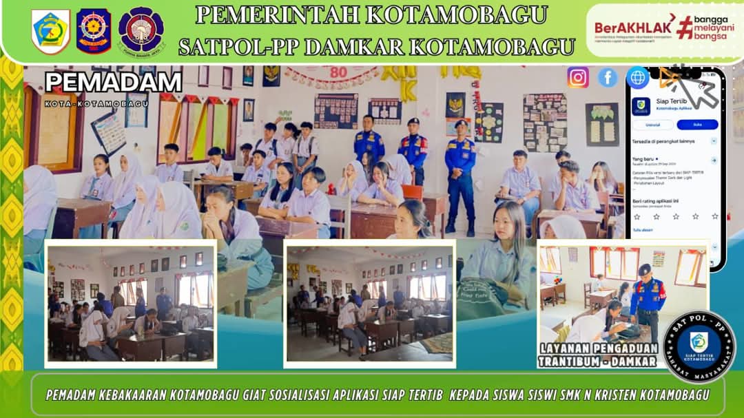 BOLMONGRAYA.CO, KOTAMOBAGU– Dinas Pemadam Kebakaran dan Penyelamatan (Damkar) Kota Kotamobagu menggelar kegiatan edukasi dan sosialisasi penggunaan aplikasi “Siap Tertib” di SMK 23 Maret Kotamobagu, Senin (27/10/2025).