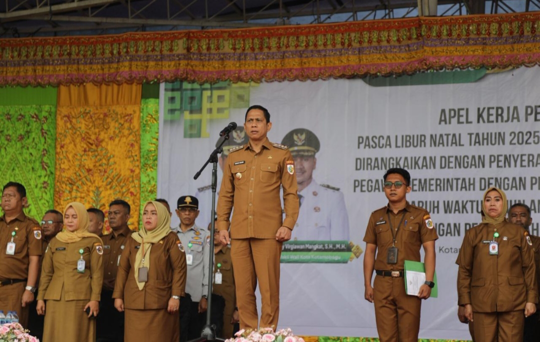 BOLMONGRAYA.CO, KOTAMOBAGU– Pemerintah Kota (Pemkot) Kotamobagu menggelar apel kerja perdana Aparatur Sipil Negara (ASN) pasca cuti bersama perayaan hari besar keagamaan Natal dan Tahun Baru (Nataru).
