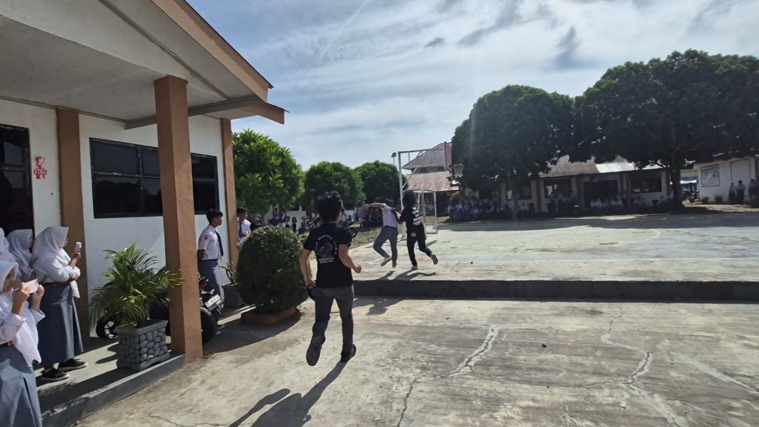 Suasana gembira yang dirangkaikan dengan sejumlah lomba dan atraksi seketika berubah tegang setelah para siswa melihat penangkapan terhadap seorang pelaku yang digambarkan terlibat dalam aksi perundungan di lingkungan sekolah.
