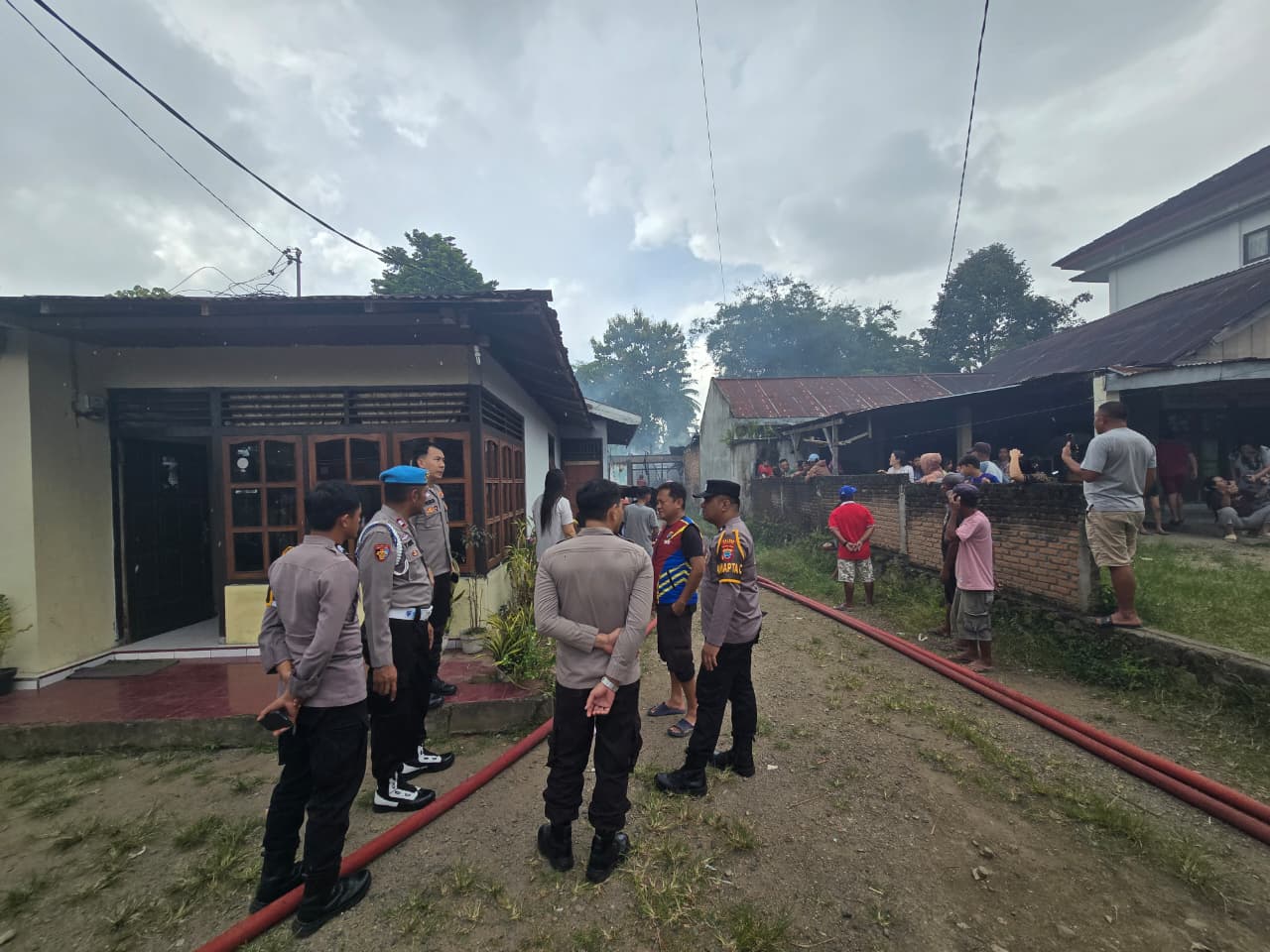 Tim Damkar yang tiba tidak lama setelahnya langsung melakukan pemadaman, sementara pihak kepolisian membantu pengamanan area, mengatur lalu lintas, serta memastikan warga berada pada jarak aman.
