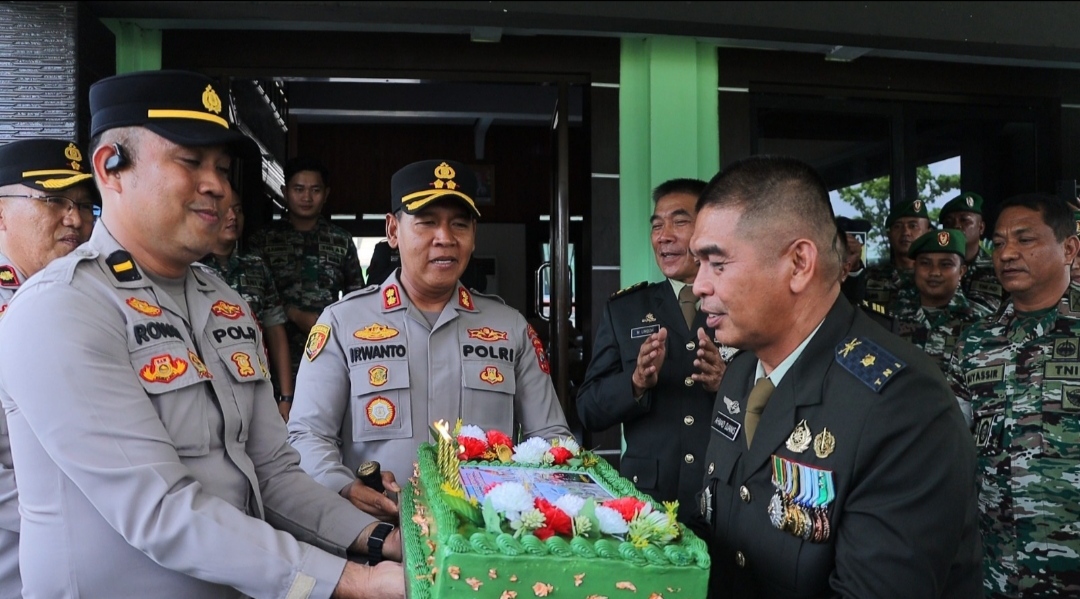 BOLMONGRAYA.CO, KOTAMOBAGU– Kapolres Kotamobagu AKBP Irwanto, SIK MH, beri kejutan dihari ulang tahun TNI ke-80 di Markas Kodim 13030 Bolmong berupa tumpeng dan kue ulang tahun, Minggu (5/10/2025).