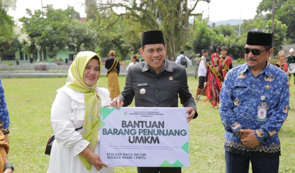 Pada momentum tersebut, Wali Kota Kotamobagu Weny Gaib didampingi Wakil Wali Kota Rendy V. Mangkat SH MH, menyerahkan bantuan berupa barang penunjang bagi 60 pelaku Usaha Mikro Kecil dan Menengah (UMKM) di Kota Kotamobagu.