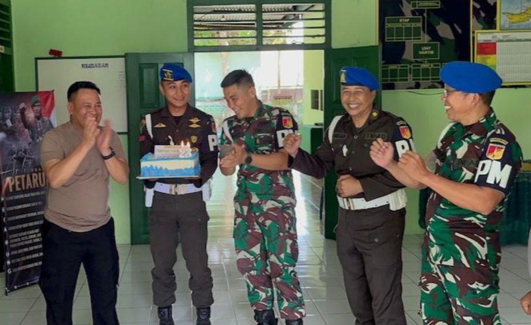 Sesampainya di Mako Subden POM, ternyata telah disiapkan kejutan dari Kasubdenpom Kapten Risky Aditya bersama jajaran.