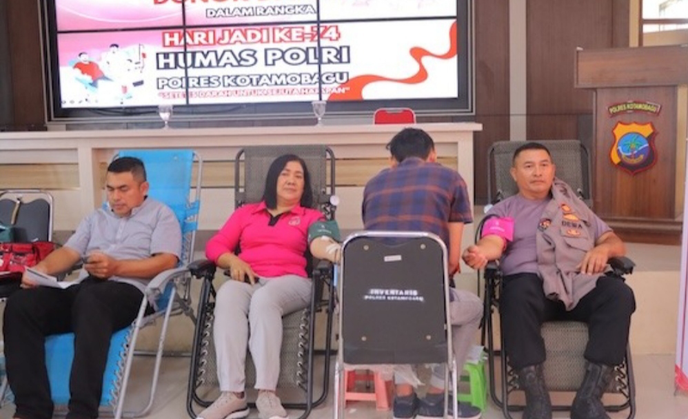 BOLMONGRAYA.CO, KOTAMOBAGU– Aksi sosial donor darah mewarnai rangkaian kegiatan Polres Kotamobagu dalam rangka menyambut HUT ke 74 Humas Polri.