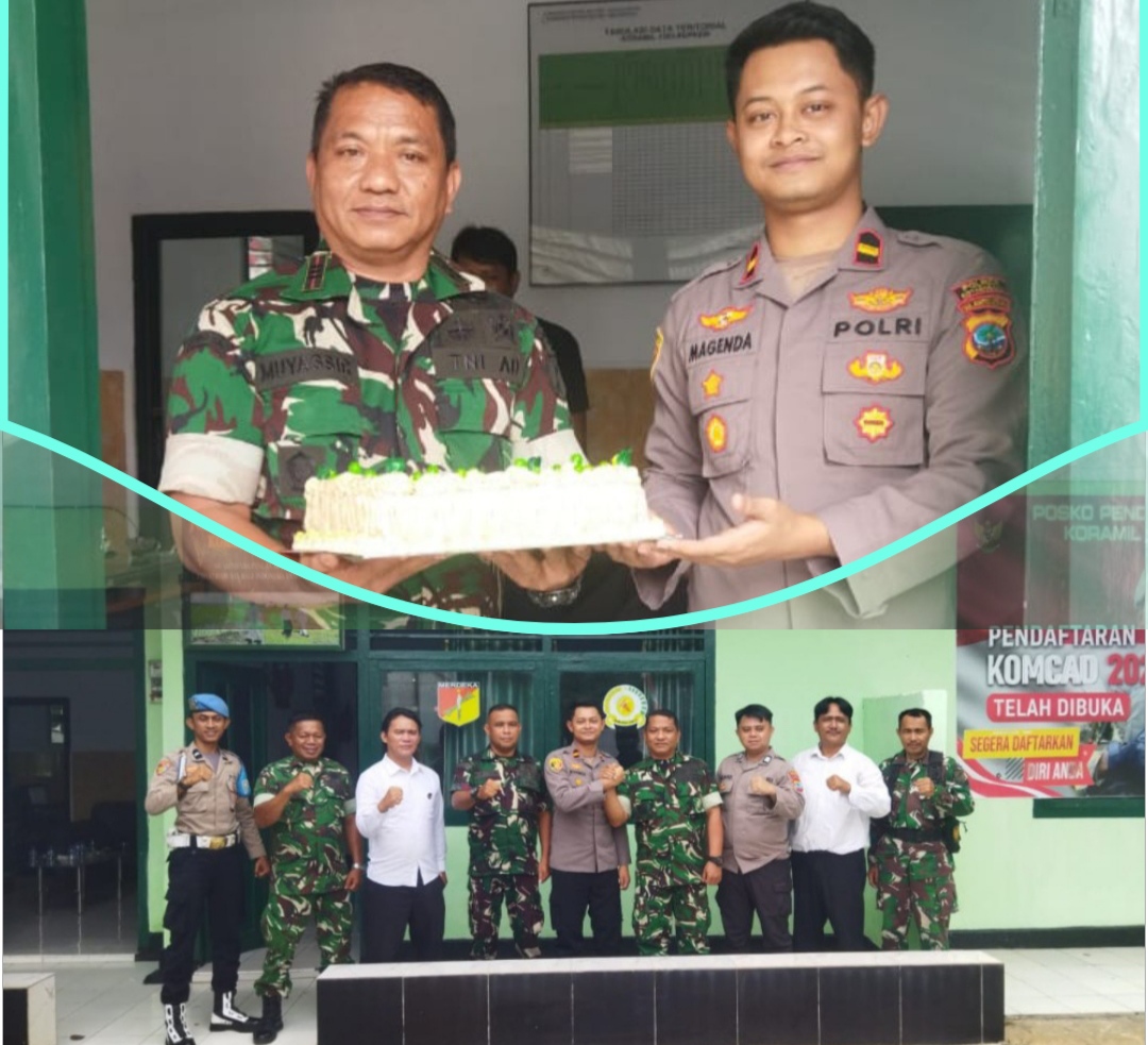 Di mana, sejumlah personel Polsek Kotamobagu Utara yang dipimpin langsung Kapolsek IPDA Magenda Dimas Adrianto, S.TrK datang memberikan kejutan spesial serta ucapan selamat ulang tahun ke-80 untuk TNI.